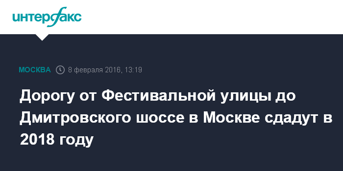 Дорогу от Фестивальной улицы до Дмитровского шоссе в Москве сдадут в 2018 году