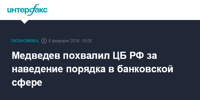 Медведев похвалил ЦБ РФ за наведение порядка в банковской сфере