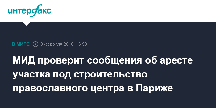 МИД проверит сообщения об аресте участка под строительство православного центра в Париже