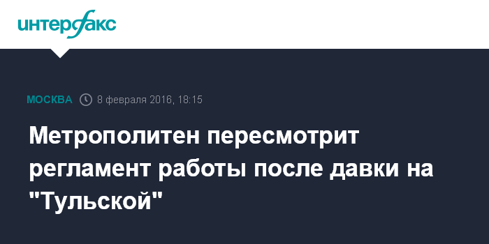 Москва. 8 февраля. INTERFAX.RU - Московский метрополитен пересмотрит регламент закрытия вестибюлей и сделает организационные выводы в связи с давкой на станции "Тульская" в понедельник утром. Об этом заявил руководитель московского метрополитена Дмитрий Пегов.