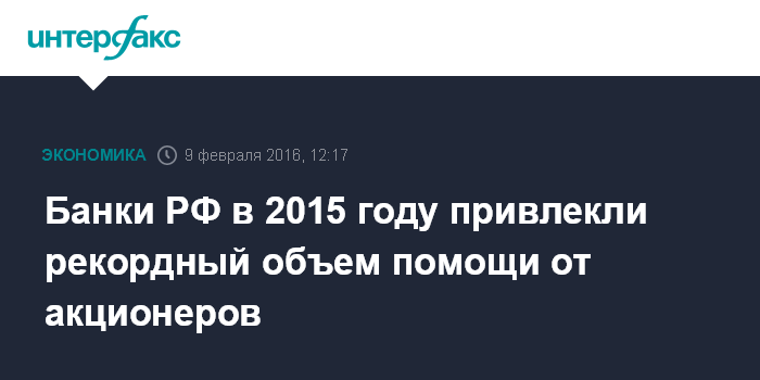 Банки РФ в 2015 году привлекли рекордный объем помощи от акционеров