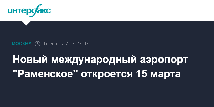 Новый международный аэропорт "Раменское" откроется 15 марта