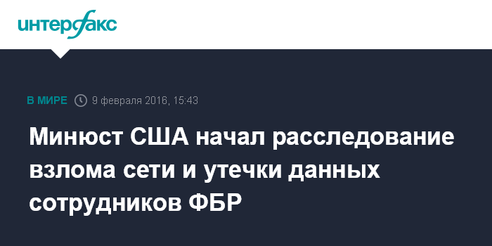 Москва. 9 февраля. INTERFAX.RU - Министерство юстиции США расследует взлом своей компьютерной системы, результатом которого стала утечка данных тысяч сотрудников ФБР и министерства внутренней безопасности.