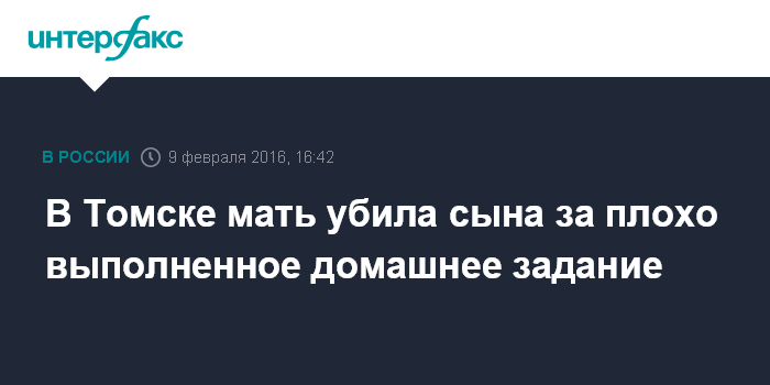 В Томске мать убила сына за плохо выполненное домашнее задание