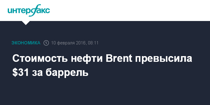 Стоимость апрельских фьючерсов на нефть Brent на лондонской бирже ICE Futures к 7:55 по московскому времени выросла на 2,3% - до $31,03 за баррель, сообщает агентство Bloomberg.
