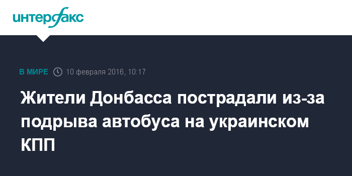 Москва. 10 февраля. INTERFAX.RU - На украинском блокпосте в Донбассе подорвался пассажирский автобус, три человека пострадали.