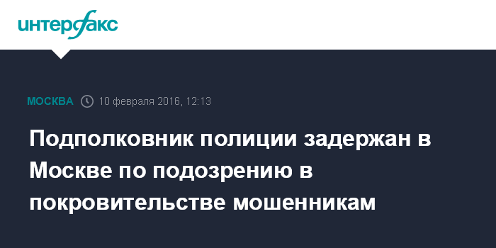 Подполковник полиции задержан в Москве по подозрению в покровительстве мошенникам