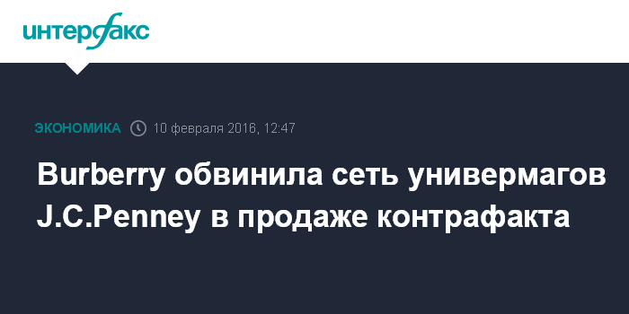 Москва. 10 февраля. INTERFAX.RU – Британская Burberry, один из ведущих мировых производителей товаров класса "люкс", подала в суд на крупную американскую сеть универмагов J.C.Penney, обвинив ее в продаже одежды с классическим клетчатым рисунком, который является визитной карточкой Burberry, сообщает MarketWatch.