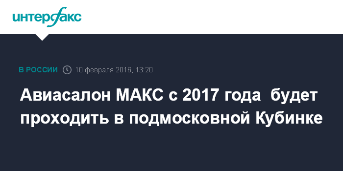 Москва. 10 февраля. INTERFAX.RU - Авиасалон МАКС с 2017 года будет проходить на подмосковном аэродроме "Кубинка", сообщил источник в авиаотрасли в кулуарах выставки гражданской авиации.