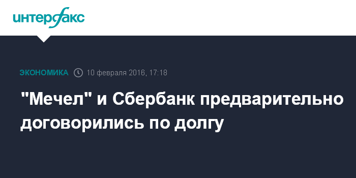 Москва. 10 февраля. INTERFAX.RU – Предварительные договоренности по реструктуризации долга "Мечела" достигнуты, но компании необходимо выполнить ряд согласованных условий, сообщили "Интерфаксу" в пресс-службе Сбербанка.