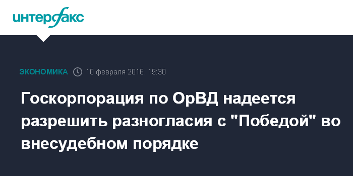 Госкорпорация по ОрВД надеется разрешить разногласия с "Победой" во внесудебном порядке