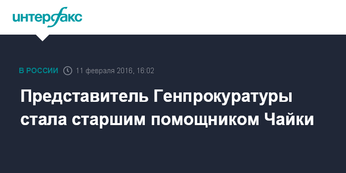 Представитель Генпрокуратуры стала старшим помощником Чайки