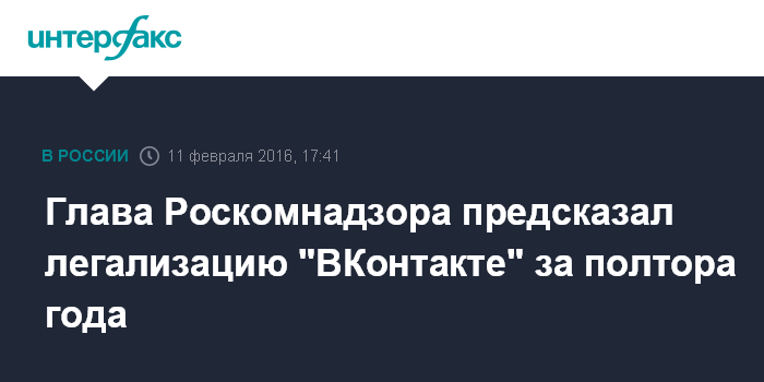 Глава Роскомнадзора предсказал легализацию "ВКонтакте" за полтора года