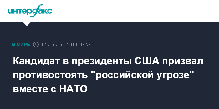 Кандидат в президенты США призвал противостоять "российской угрозе" вместе с НАТО