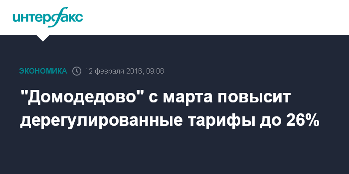 "Домодедово" с марта повысит дерегулированные тарифы до 26%