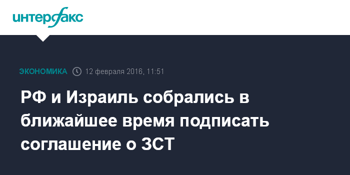 РФ и Израиль собрались в ближайшее время подписать соглашение о ЗСТ