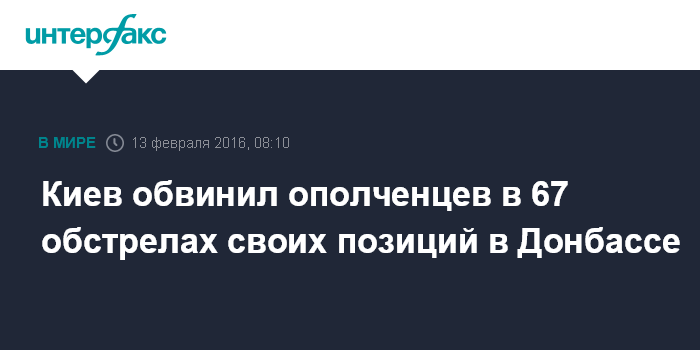 Москва. 13 февраля. INTERFAX.RU - За прошедшие сутки ополченцы 67 нарушили перемирие на Донбассе, сообщает пресс-центр штаба силовой операции.