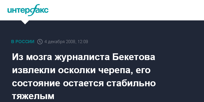 Из мозга журналиста Бекетова извлекли осколки черепа, его состояние остается стабильно тяжелым