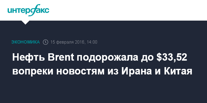 Нефть Brent подорожала до $33,52 вопреки новостям из Ирана и Китая