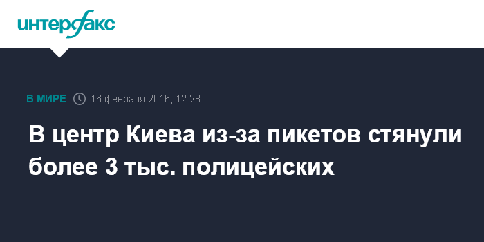 Москва. 16 февраля. INTERFAX.RU - Во время массовых мероприятий в центре Киева в усиленном режиме будут работать более 3 тысяч сотрудников органов внутренних дел, сообщает городская Национальная полиция Украины.