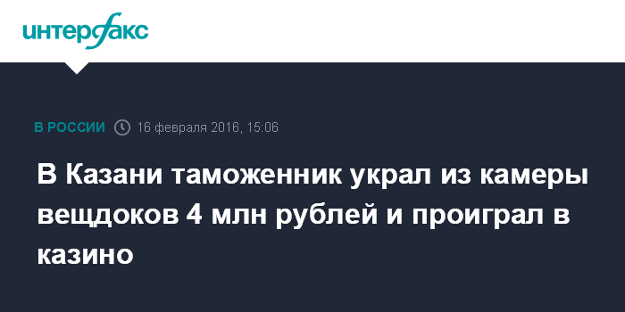 В Казани таможенник украл из камеры вещдоков 4 млн рублей и проиграл в казино