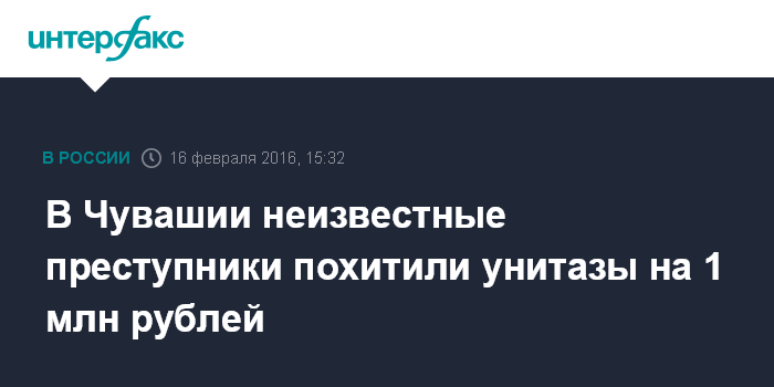 Москва. 16 февраля. INTERFAX.RU - Неизвестные похитили 624 унитаза стоимостью более миллиона рублей с территории завода по производству сантехники в Чувашии, возбуждено уголовное дело, сообщил "Интерфаксу" источник в правоохранительных органах.