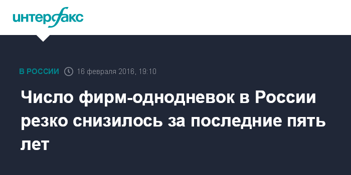 Москва. 16 февраля. INTERFAX.RU - Число юридических лиц, которые имеют признаки фирм-однодневок, резко снизилось за последние годы в результате действий Федеральной налоговой службы и ужесточения законодательства в области регистрации компаний, свидетельствуют данные системы "СПАРК-Интерфакс".