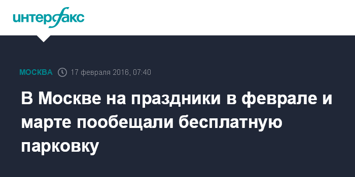 Москва. 17 февраля. INTERFAX.RU - Парковаться в Москве можно будет бесплатно 21, 22 и 23 февраля и 6, 7 и 8 марта, сообщил заммэра столицы Максим Ликсутов.