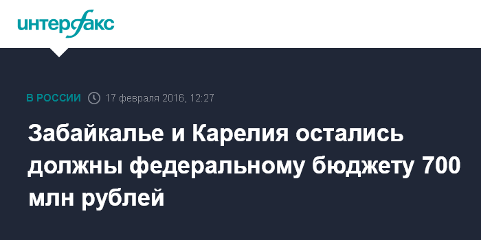 Забайкалье и Карелия остались должны федеральному бюджету 700 млн рублей
