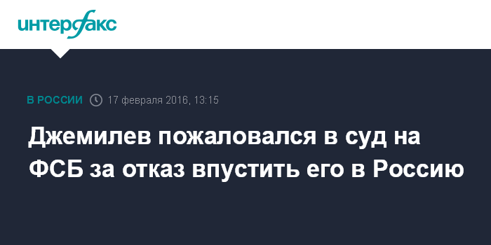 В 2014 году на КПП при въезде в Крым Джемилеву было отказано в пересечении границы РФ до 2019 года. В феврале прошлого года Басманный суд Москвы признал законным запрет ФМС на въезд в Крым экс-главе меджлиса. В суде Фейгин сообщил, что его доверителю не представили официальное решение ФМС о запрете на въезд. Представители ФМС просили жалобу отклонить.