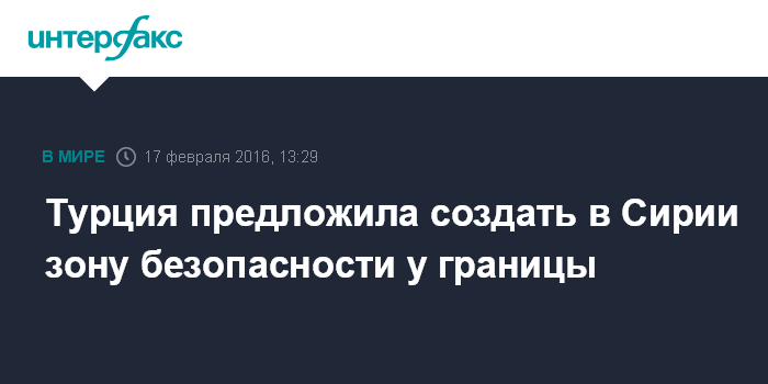 Москва. 17 февраля. INTERFAX.RU - Анкара выступает за создание безопасной зоны на севере Сирии, в зоне, примыкающей к Турции, заявил в среду турецкий вице-премьер Ялчин Акдоган.