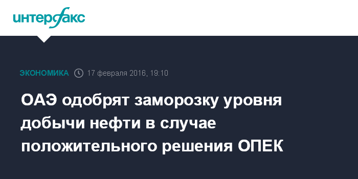 ОАЭ одобрят заморозку уровня добычи нефти в случае положительного решения ОПЕК