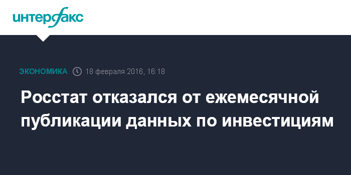 Москва. 18 февраля. INTERFAX.RU – Росстат отказался от ежемесячной публикации данных по динамике инвестиций в основной капитал.