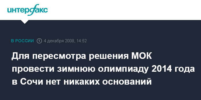 Для пересмотра решения МОК провести зимнюю олимпиаду 2014 года в Сочи нет никаких оснований
