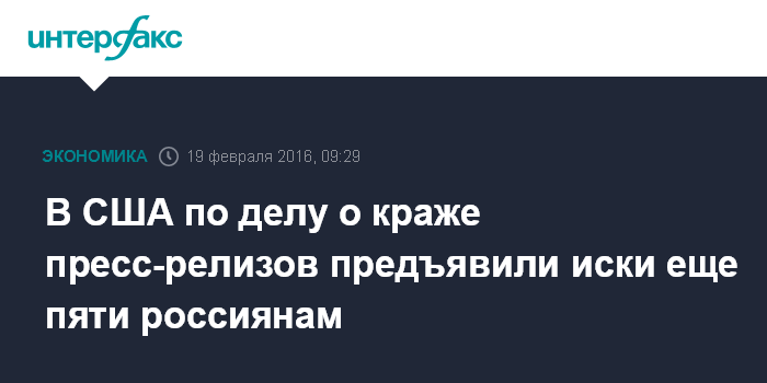 В США по делу о краже пресс-релизов предъявили иски еще пяти россиянам