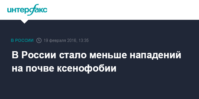 Москва. 19 февраля. INTERFAX.RU - Нападениям на почве ксенофобии в России в 2015 году подверглись 80 человек, 11 из них погибли, сообщил специалист информационно-аналитического центра "Сова" Вера Альперович.