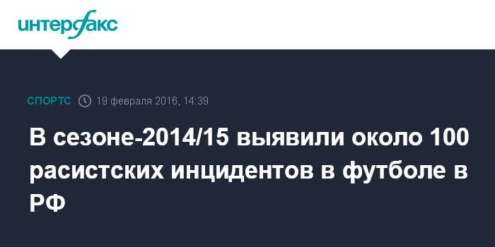 В сезоне-2014/15 выявили около 100 расистских инцидентов в футболе в РФ
