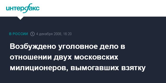 Возбуждено уголовное дело в отношении двух московских милиционеров, вымогавших взятку