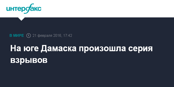 Москва. 21 февраля. INTERFAX.RU - Серия взрывов произошла на юге Дамаска, сообщает в воскресенье сирийское государственное телевидение.