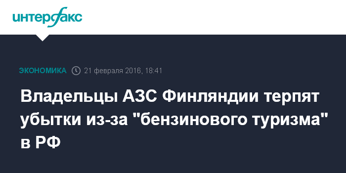 Москва. 21 февраля. INTERFAX.RU - Владельцы автозаправок в приграничных с Россией регионах Финляндии терпят большие убытки из-за "бензинового туризма" к восточному соседу.