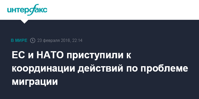 Москва. 23 февраля. INTERFAX.RU - Евросоюз и НАТО начали координировать действия в решении миграционной проблемы, сотрудничество будет расширяться, заявили во вторник глава дипломатии ЕС Федерика Могерини и генеральный секретарь НАТО Йенс Столтенберг.