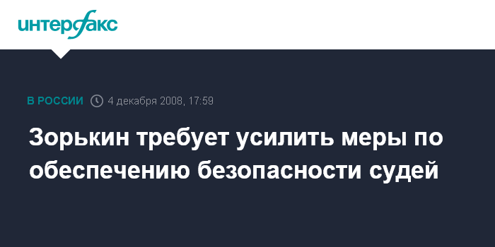 "Очевидно, что степень угроз, связанных с терроризмом, организованной и транснациональной преступностью, требует повышенных мер (безопасности судей - ИФ)", - сказал Зорькин в эфире телеканала "Вести" в четверг.