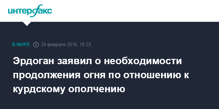 Москва. 24 февраля. INTERFAX.RU - Президент Турции Реджеп Тайип Эрдоган считает, что отряды курдского ополчения не должны подпадать под режим прекращения огня в Сирии.