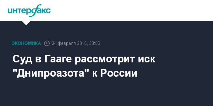 Москва. 24 февраля. INTERFAX.RU - Международный арбитражный суд в Гааге (Permanent Court of Arbitration) рассмотрит иск ПАО "Днипроазот" (Украина, Днепропетровск) к Российской Федерации, сообщается на сайте суда.