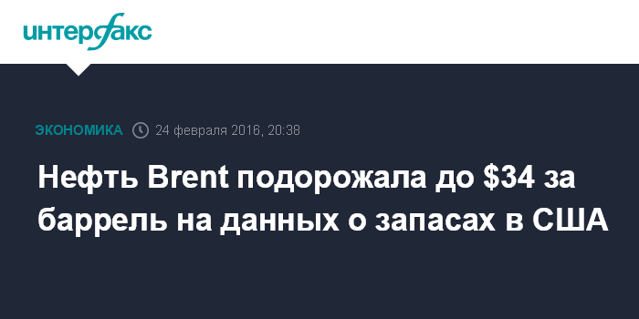 Нефть Brent подорожала до $34 за баррель на данных о запасах в США
