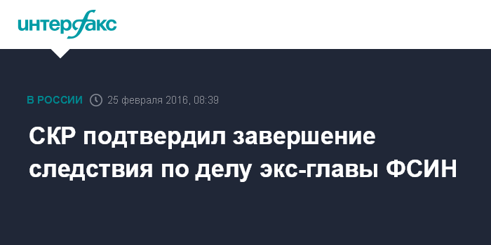 СКР подтвердил завершение следствия по делу экс-главы ФСИН