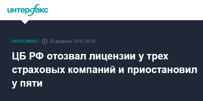 ЦБ РФ отозвал лицензии у трех страховых компаний и приостановил у пяти