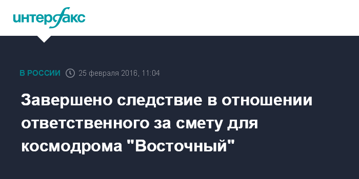 Завершено следствие в отношении ответственного за смету для космодрома "Восточный"