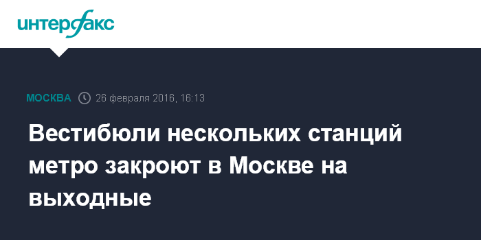 Вестибюли нескольких станций метро закроют в Москве на выходные