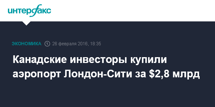 Москва. 26 февраля. INTERFAX.RU - Консорциум инвесторов во главе с канадским пенсионным фондом Ontario Teachers' Pension Plan покупает 100% пятого по величине аэропорта британской столицы Лондон-Сити, говорится в пресс-релизе консорциума.